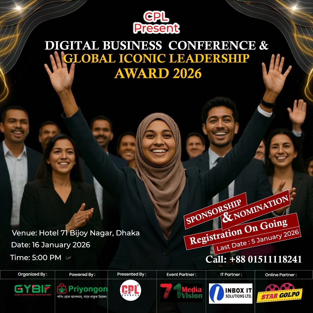 “Digital Business Conferenc & Global Iconic Leadership Award-2026” এর জন্য মনোনয়ন গ্রহণ করা হচ্ছে। আপনিও অংশগ্রহণ করতে চাইলে নিচের লিংকের দেওয়া ফরমটি পূরণ করে সাবমিট করুন। আবেদন পাওয়ার পরে আমরা দ্রুত যোগাযোগ করব।